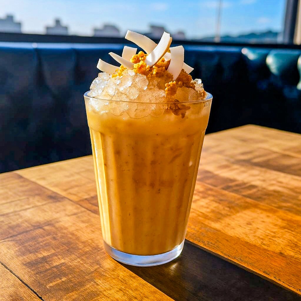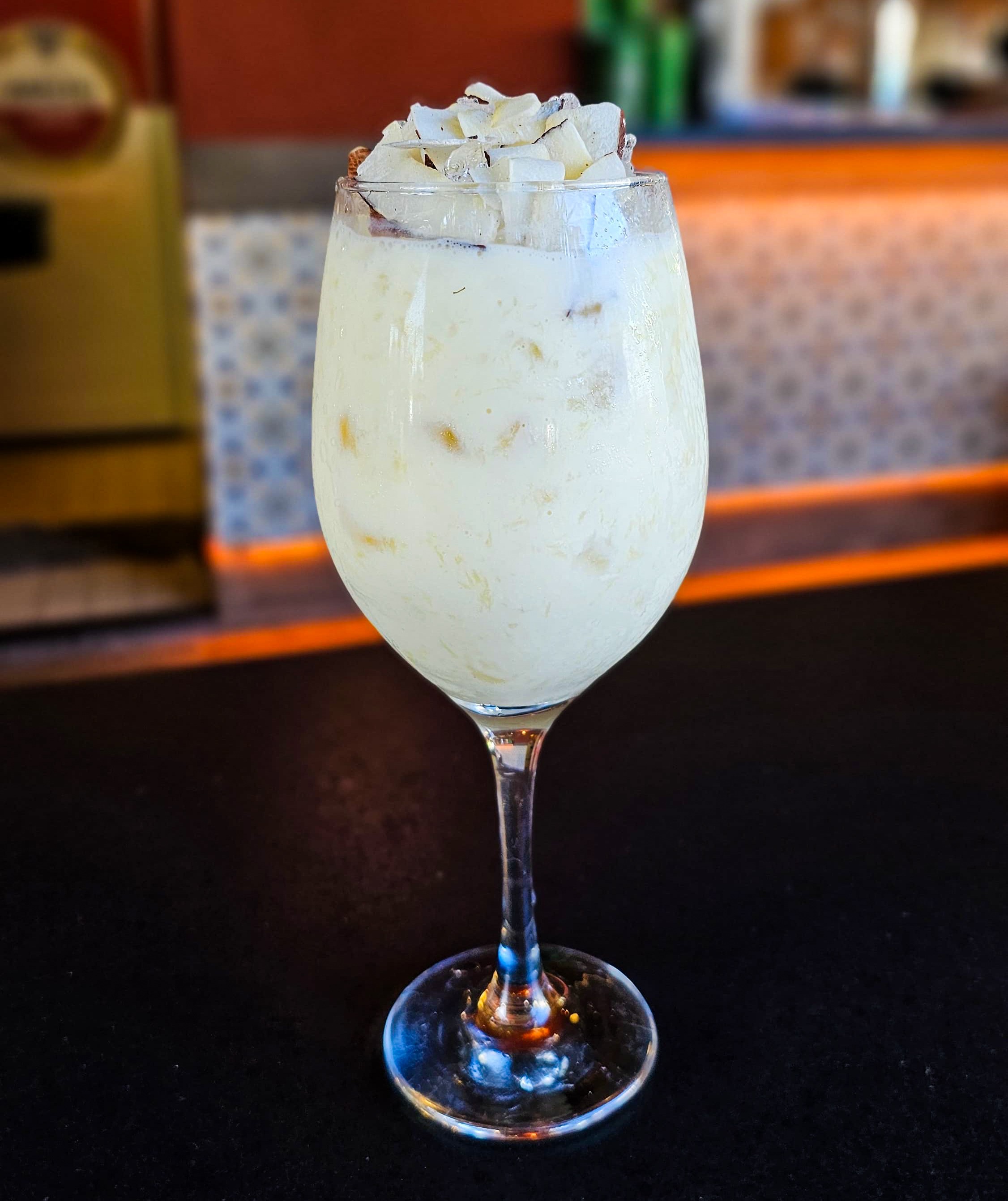 A força da cachaça combinada à cremosidade do leite de coco e do leite condensado, com o sabor marcante da paçoca de amendoim e o toque final das lascas de coco. Um drink doce, envolvente e cheio de brasilidade.