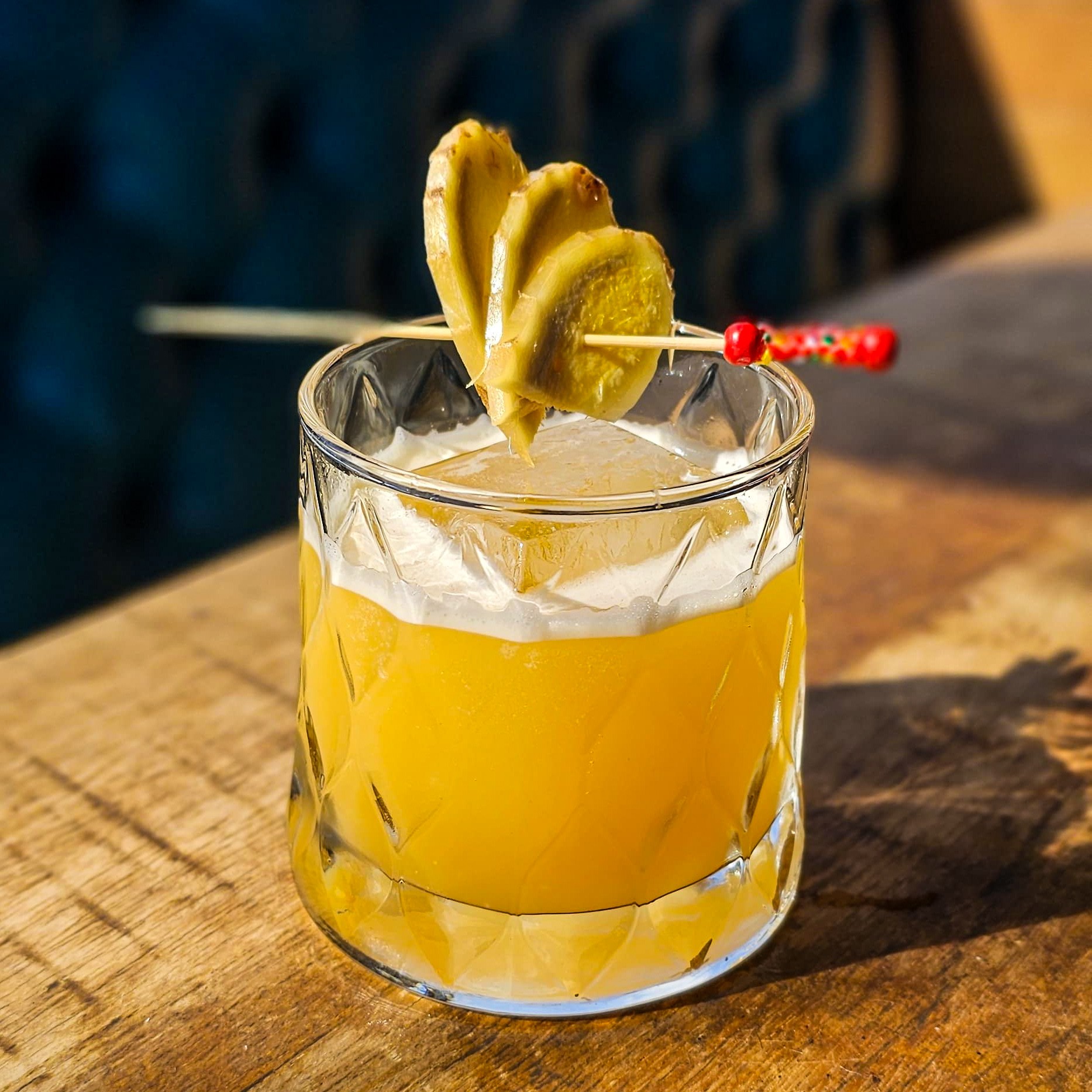 A intensidade da vodka combinada ao frescor do suco de limão, à picância da infusão de gengibre e ao toque leve da espuma de gengibre, resultando em um drink aromático, refrescante e cheio de personalidade.