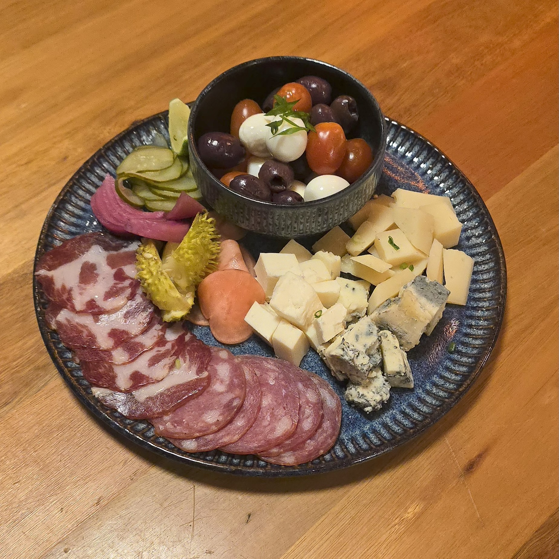 Seleção especial de salame, copa lombo, azeitonas, tomate cereja e ovo de codorna defumado, acompanhados de lascas de parmesão e queijo meia cura. Servida com picles artesanais de maxixe, cebola roxa, beterraba e rabanete. Uma combinação de sabores autênticos, perfeita para compartilhar.