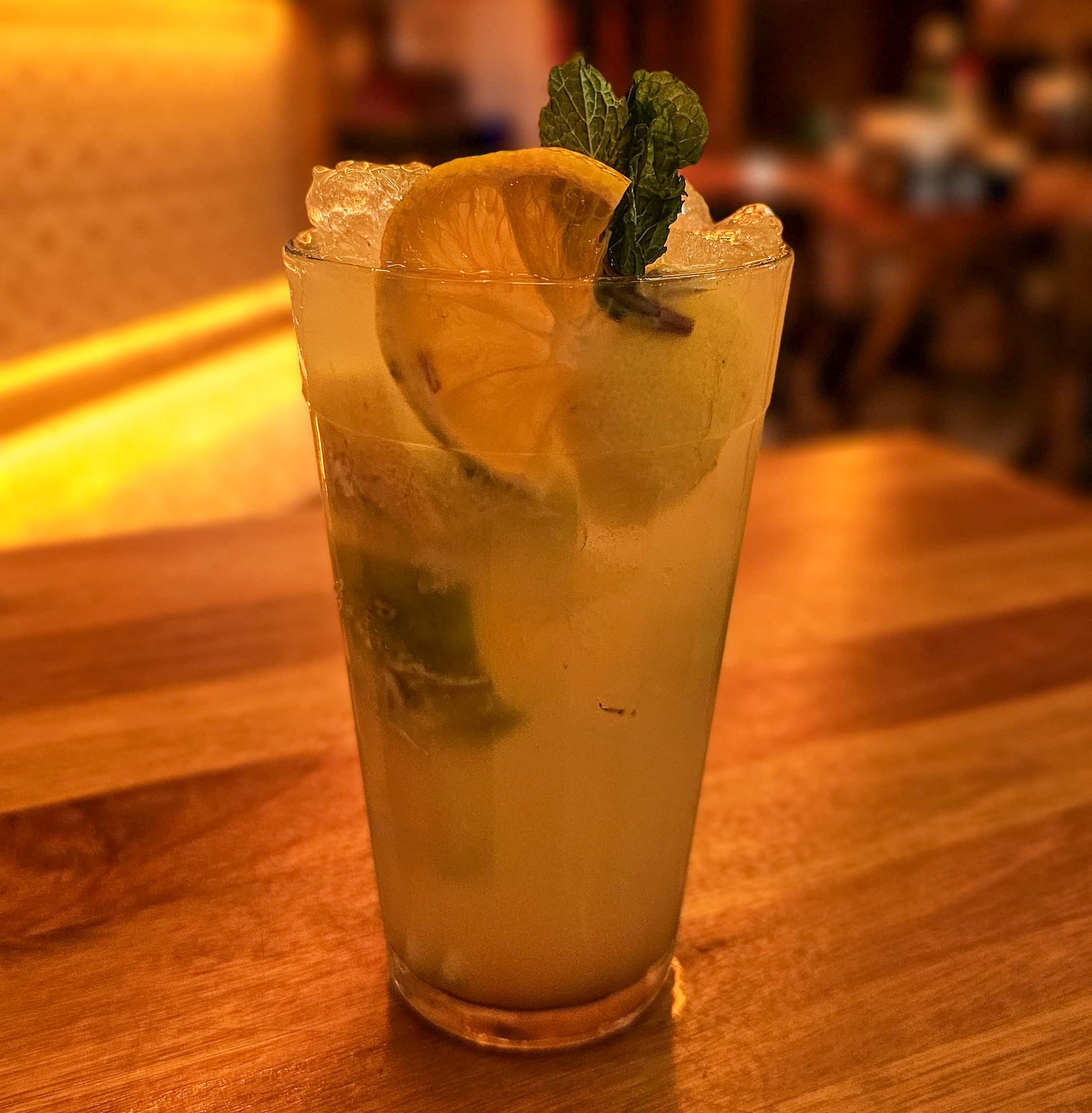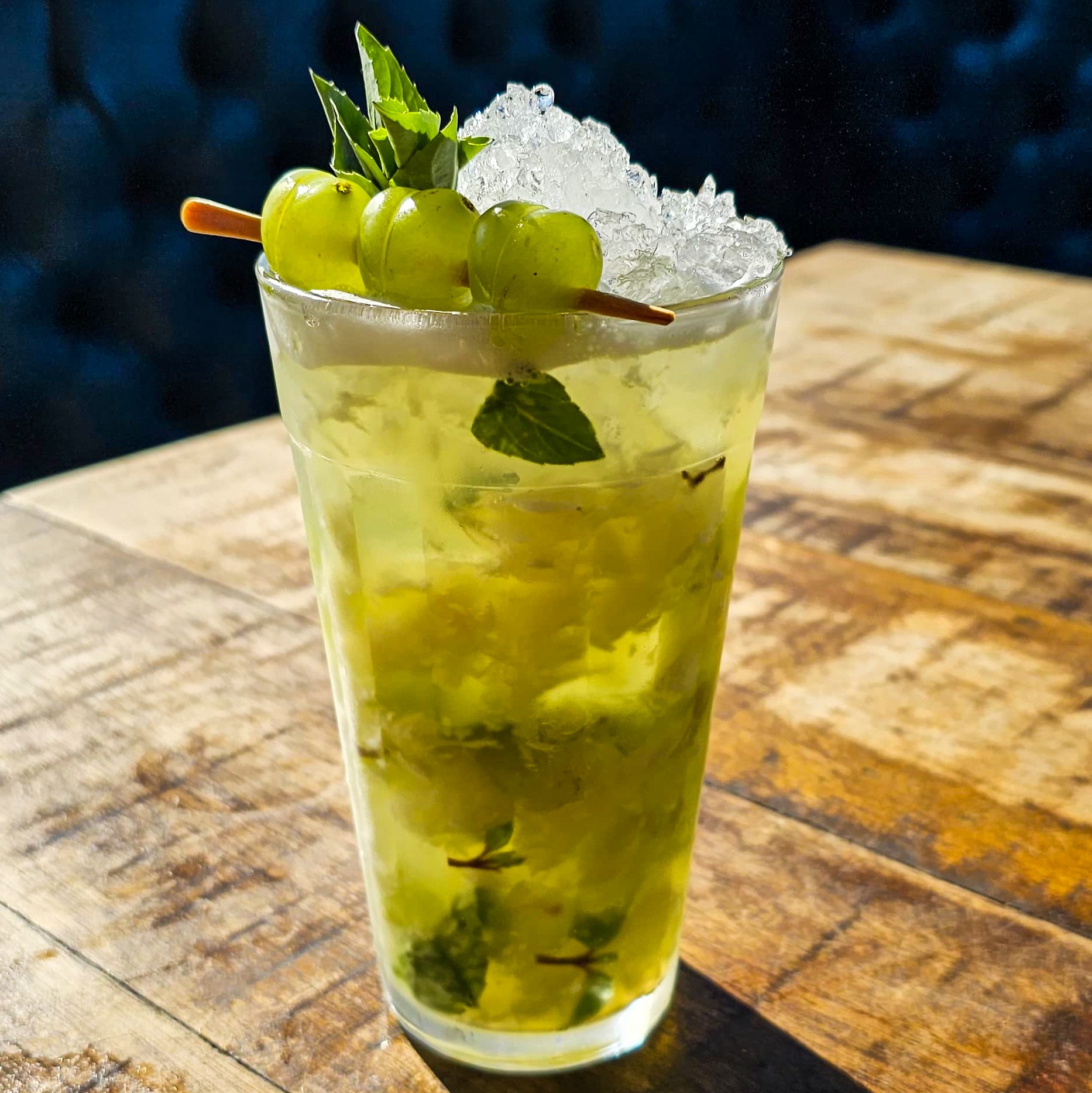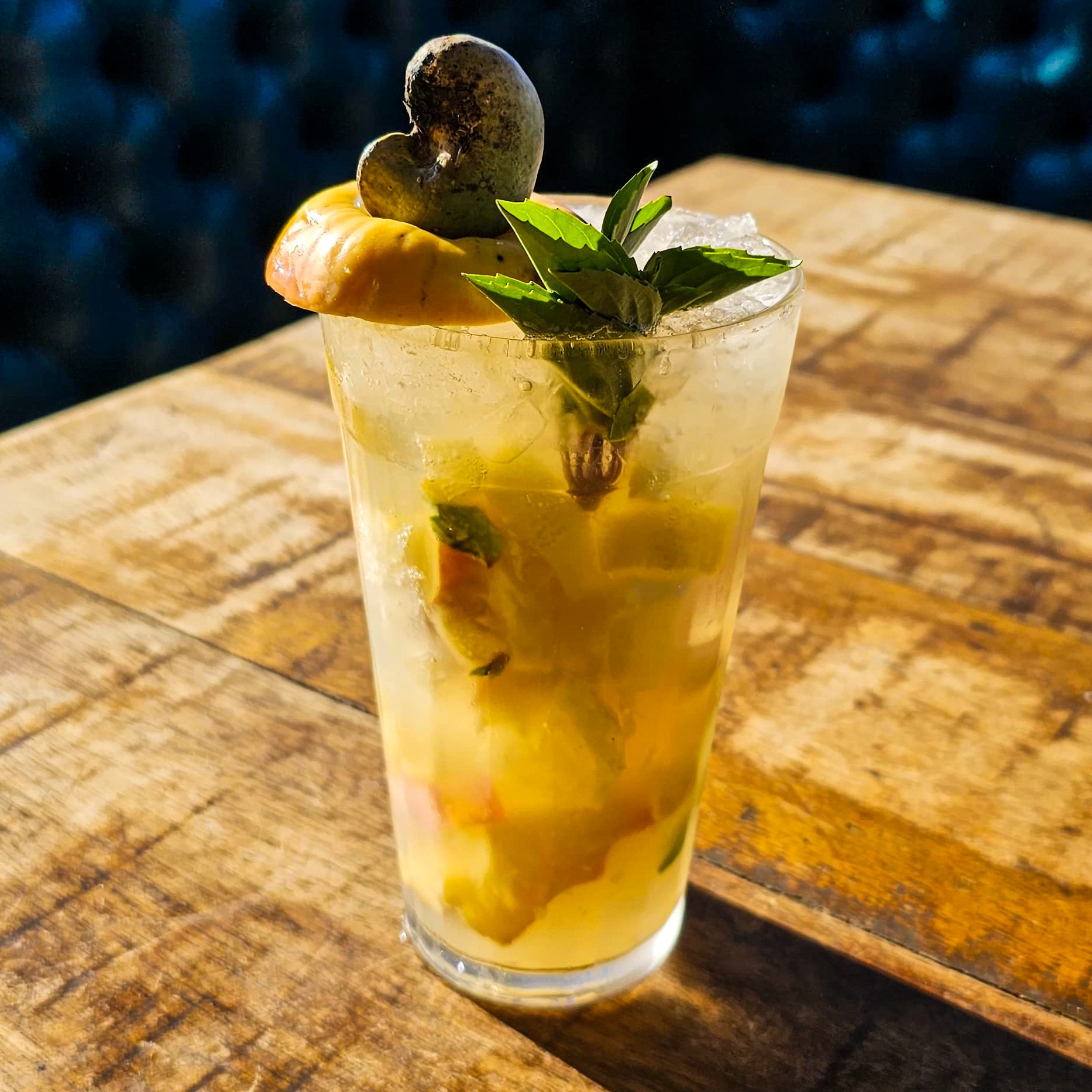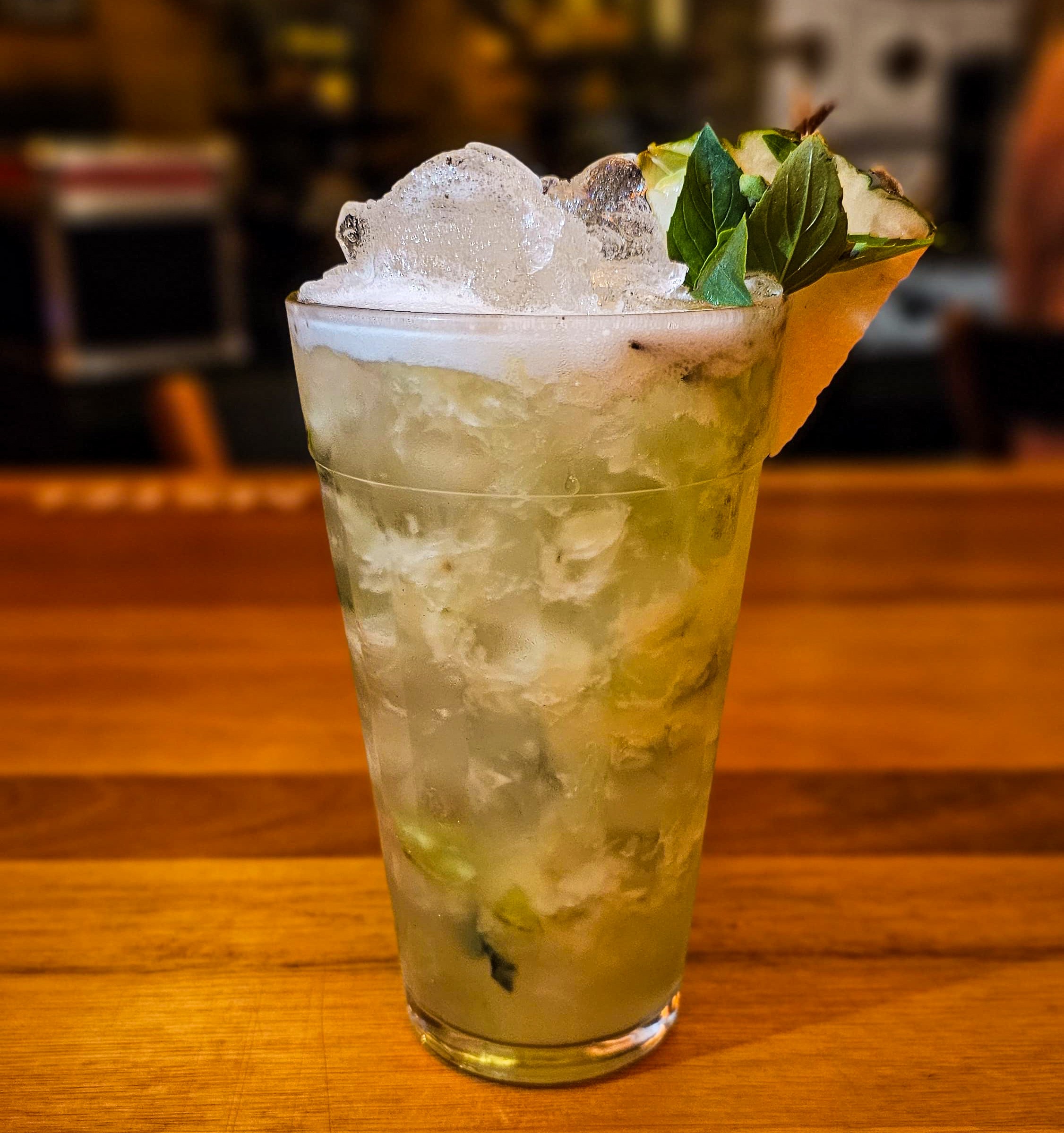 A refrescância do suco de limão taiti e do manjericão combinada ao gin e ao toque suave do xarope de açúcar, resultando em um drink leve, aromático e equilibrado.