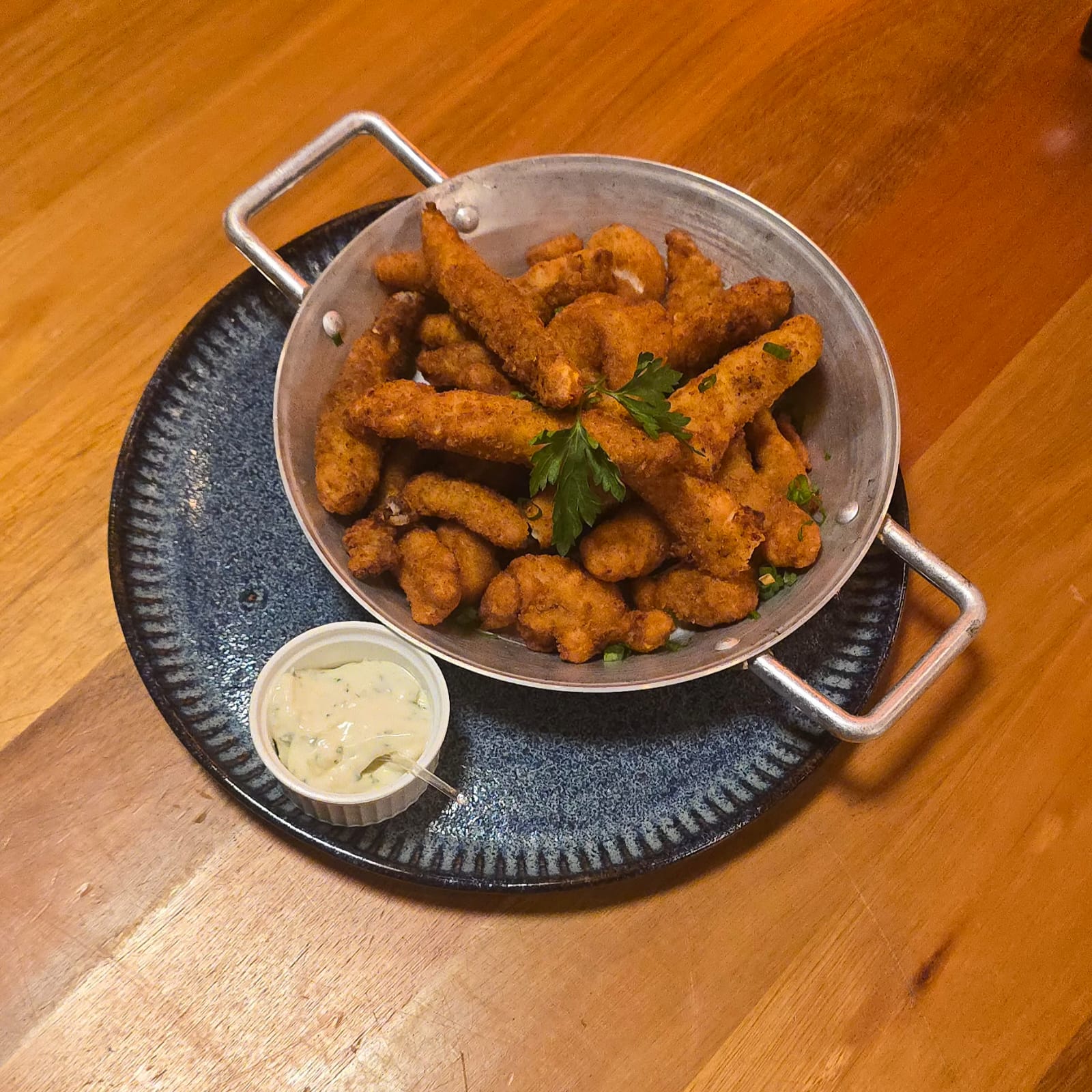 Filezinhos de tilápia empanados na farinha panko, fritos até a crocância perfeita. Servidos com nosso aioli artesanal. Leve, dourada e irresistível — ideal para petiscar.