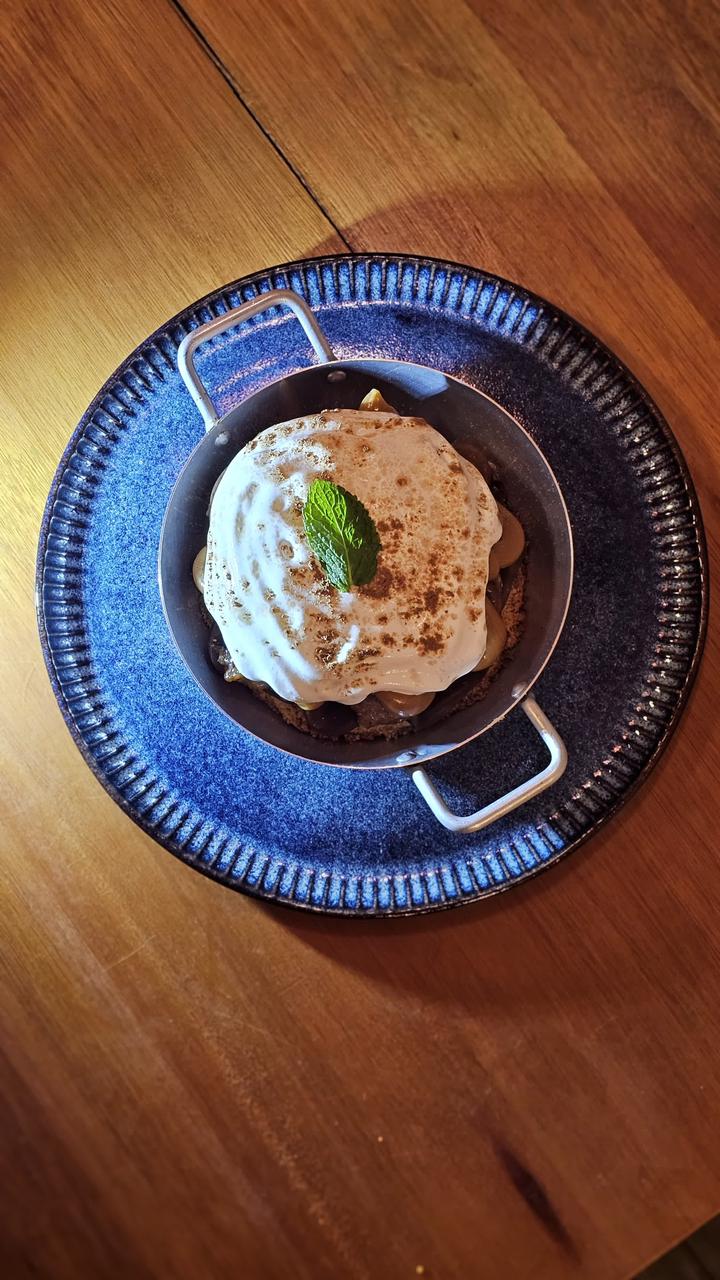 Base crocante, doce de leite cremoso, bananas assadas, creme chantilly leve e um toque de canela. Uma sobremesa clássica, com equilíbrio perfeito entre doçura e textura.