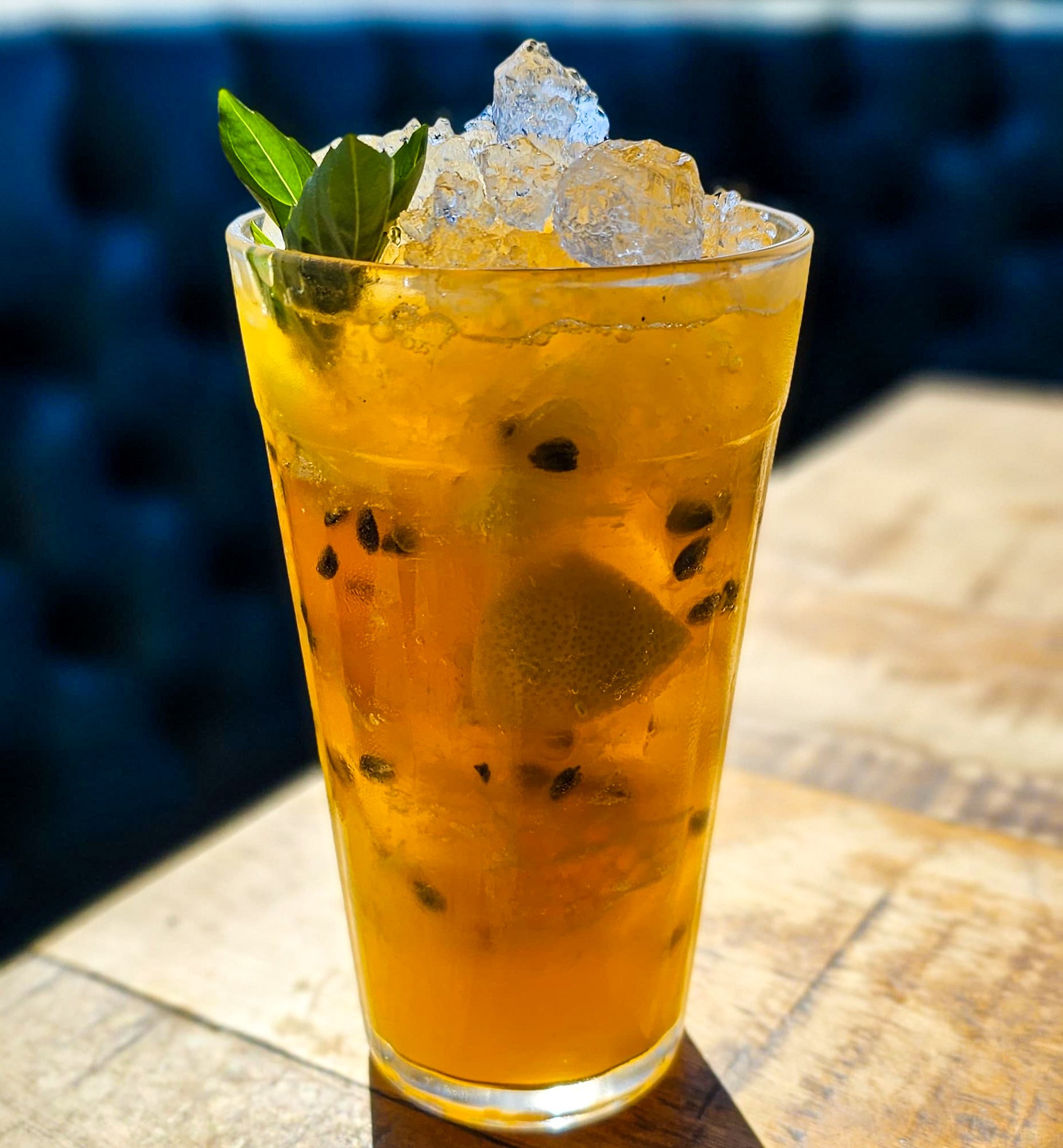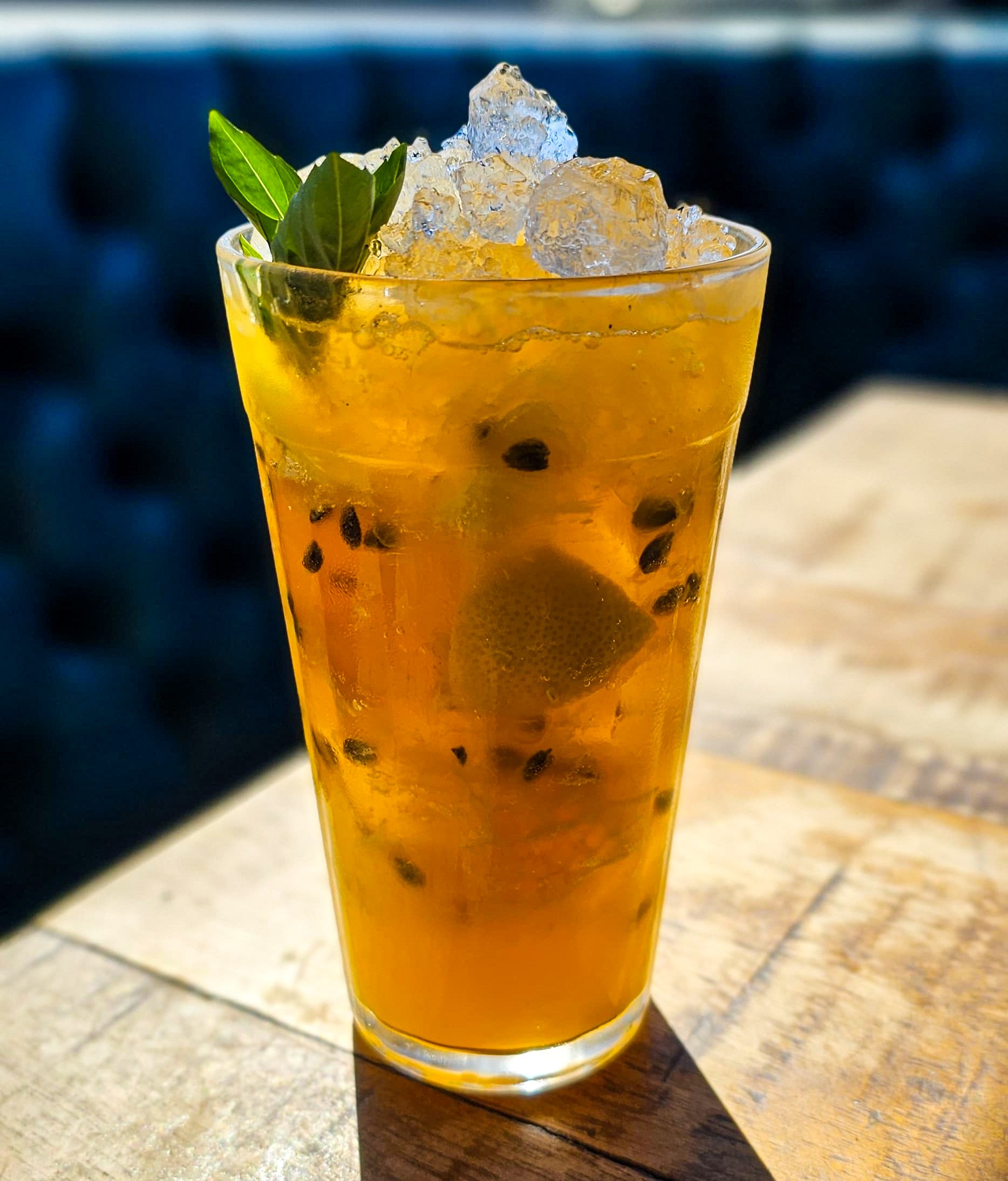 A intensidade do Gin Pantera combinada ao dulçor cítrico do xarope de tangerina com manjericão, a acidez do maracujá e o frescor da tônica, criando um drink leve, aromático e cheio de personalidade.