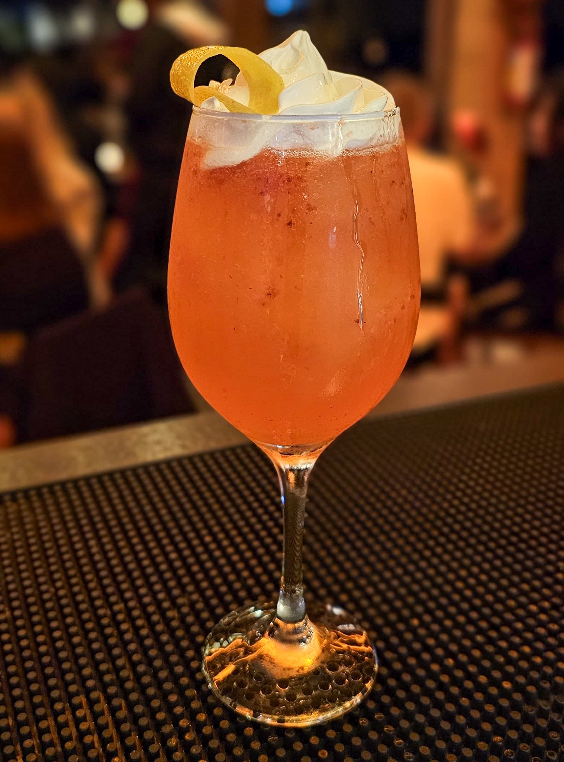 A intensidade do Gin Pantera harmonizada com o dulçor do purê de morango, a acidez do suco de tangerina, o aroma suave do licor de damasco, o equilíbrio do mix sour e o toque leve da espuma cítrica. Um drink vibrante, refrescante e cheio de camadas de sabor.