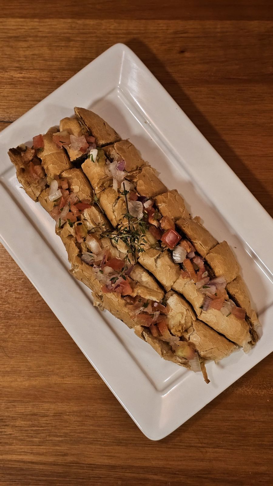 Finas fatias de lagarto, delicadamente temperadas com molho de mostarda, cobertas com lascas de parmesão e folhas frescas de rúcula. Servido com pão artesanal da casa. Uma entrada leve, sofisticada e cheia de personalidade.