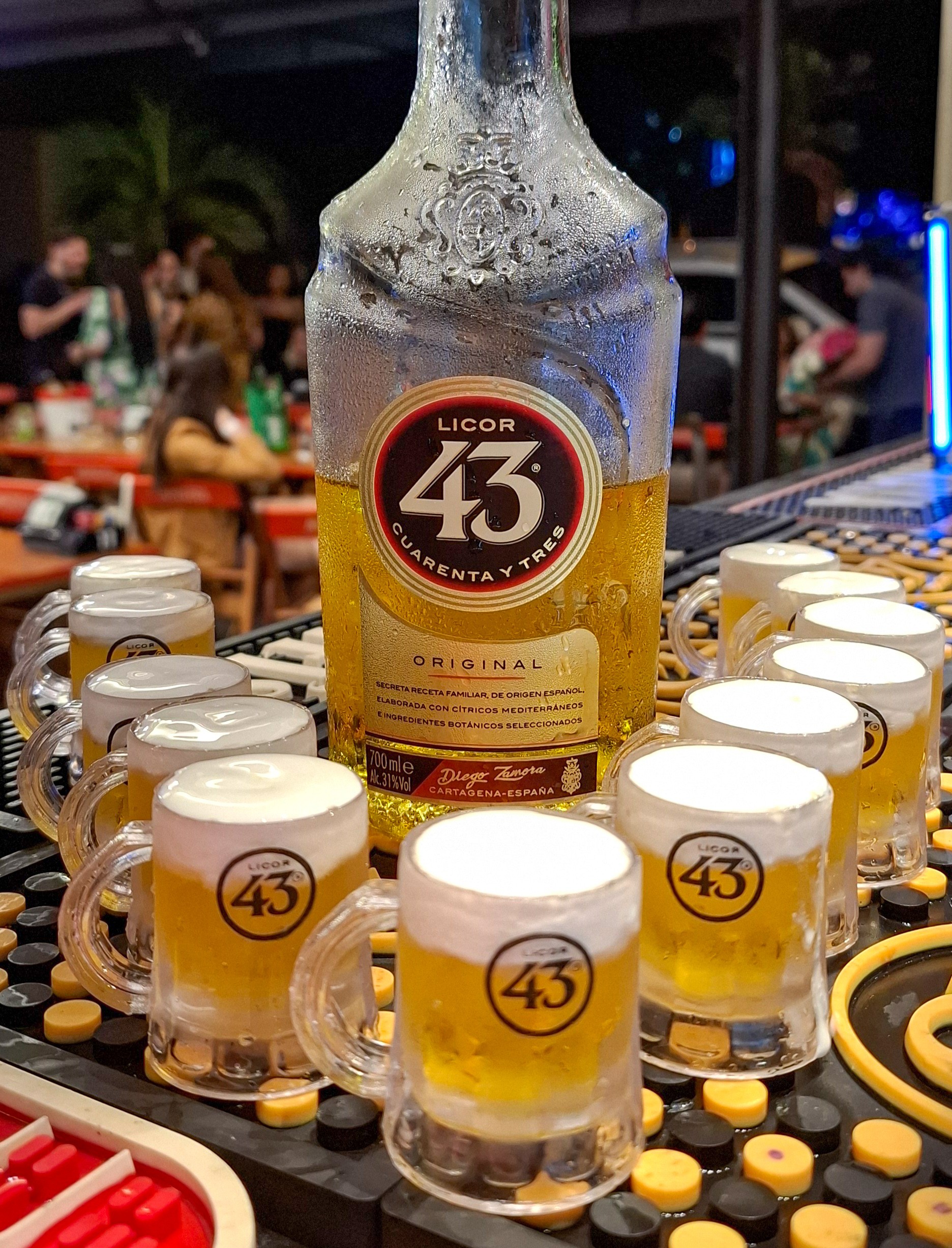 Dois mini doses de Licor 43 servidas em shot, finalizadas com chantilly. Um clássico divertido e adocicado para brindar.